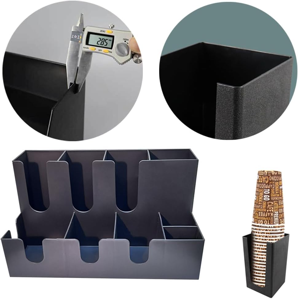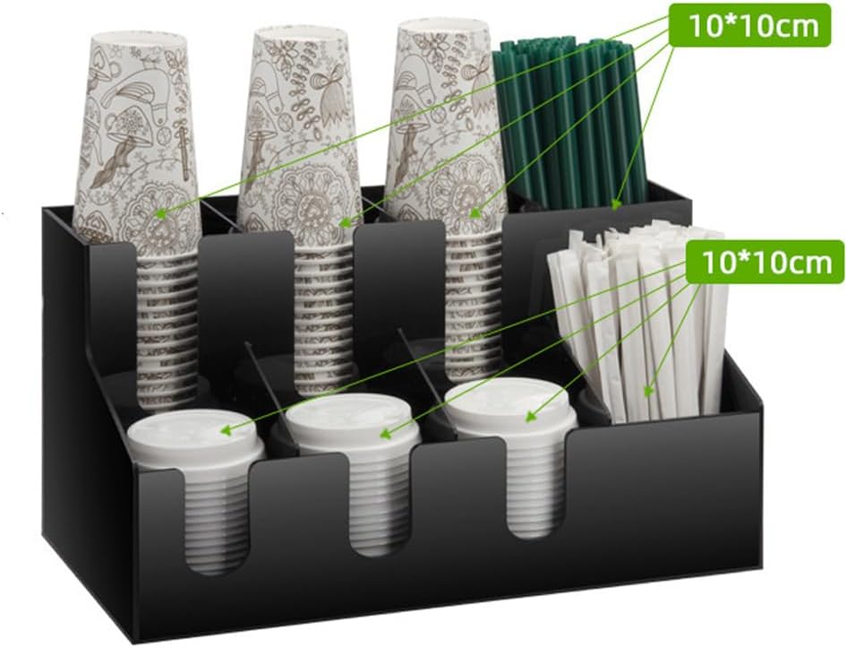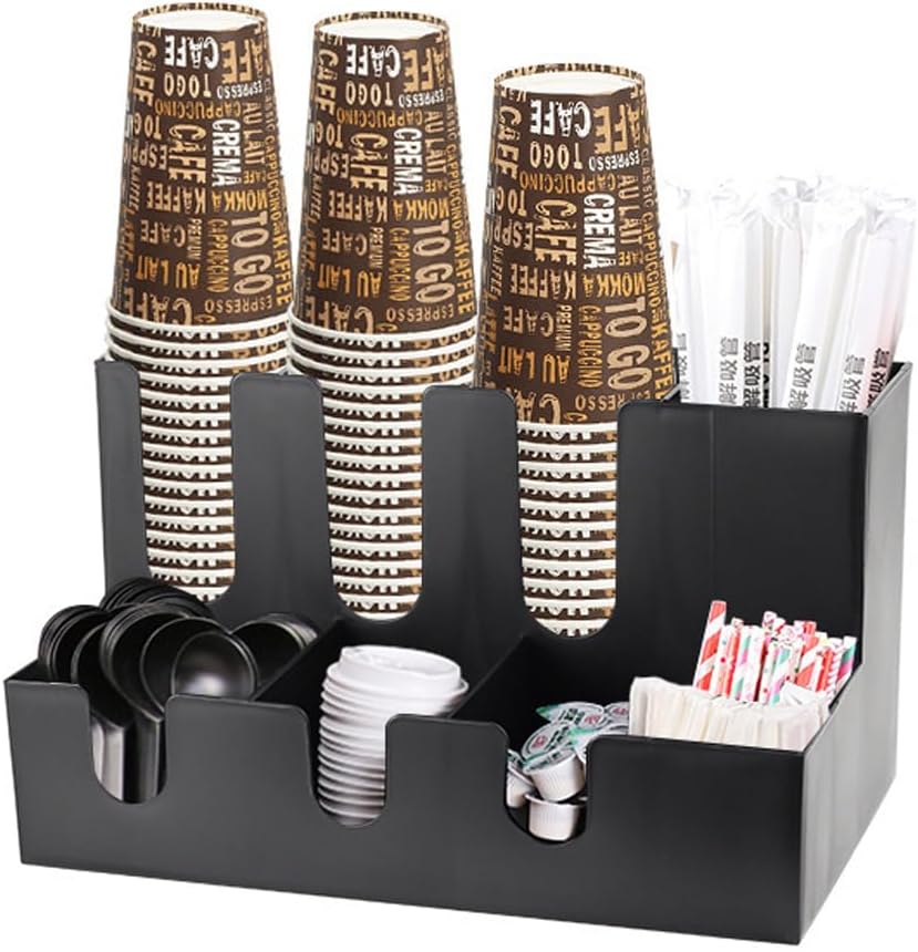 - ♥ 【Multiple compartments】 Paper cup dispenser Multiple compartments store creamers, tea bags, sugar, sweeteners, coffee bags, blenders, etc. The spacious compartment can accommodate a large amount of condiments and lounge accessories.