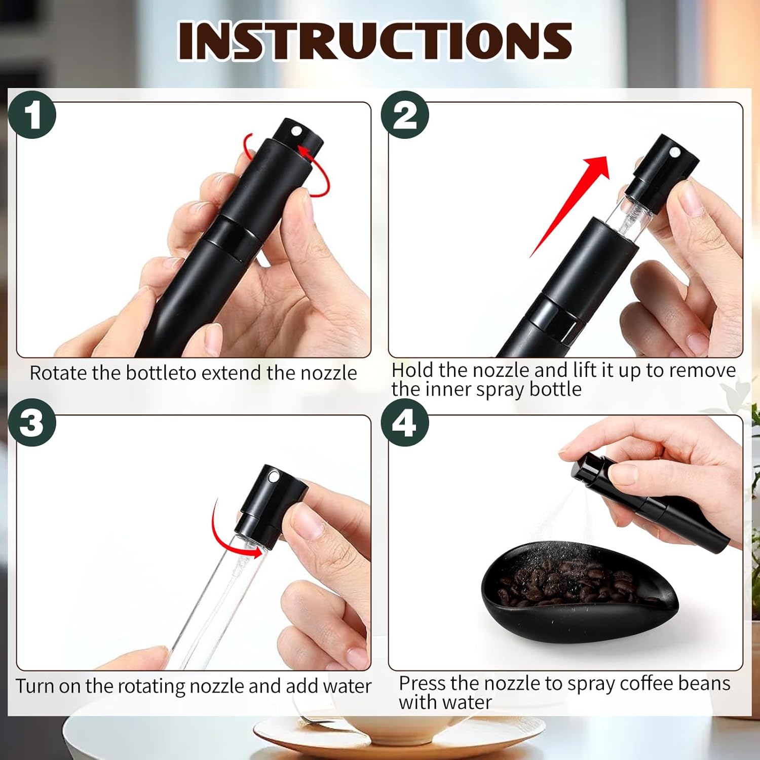 - [Easy to use]Achieve a perfectly smooth grind for your coffee beans with our easy-to-use dosing set. Reduce static electricity on coffee grounds by spraying a spray or two before grinding. The high-quality spray bottle is efficient and durable, ensuring a hassle-free coffee experience.
