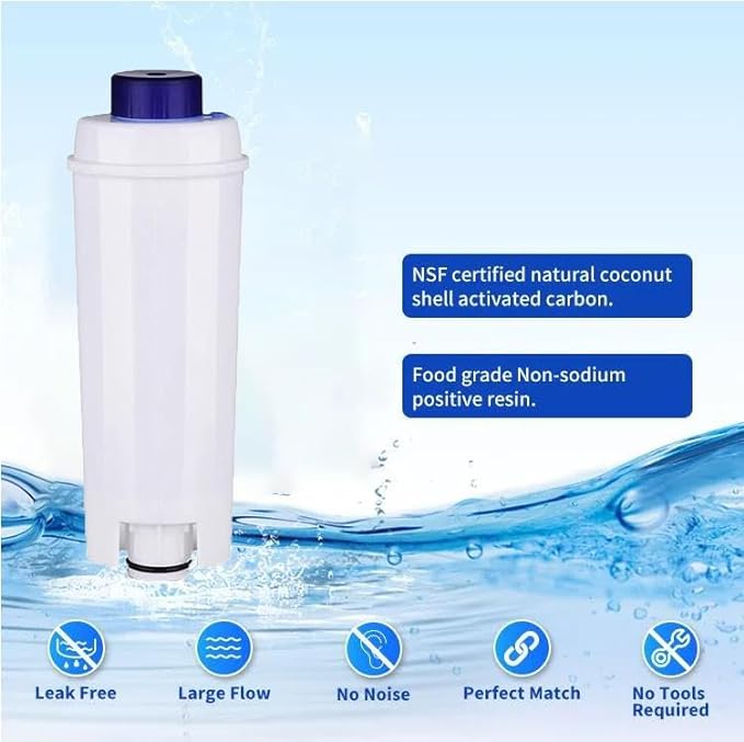 Uses natural coconut granular activated carbon and ion exchange resin, which effectively reduces rust, chlorine, taste and odor, lead, aluminum, copper and other contaminants. It can prevent limescale from building up to prolong the service life of your coffee machine.