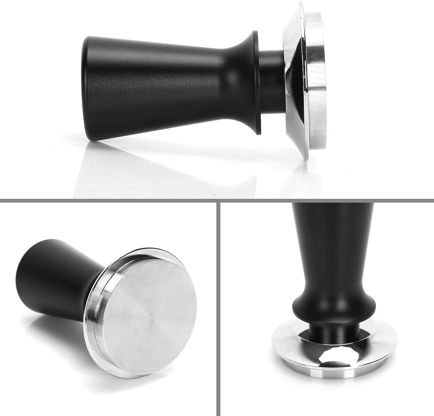 - Manufactured from food-grade stainless steel flat and aluminum alloy handle without coating, this espresso tamper has excellent rust and stain resistance, which can be used for a long time. After use, you can directly rinse with water to clean up, there is no need to disassemble, not to mention the worry that it will rust.