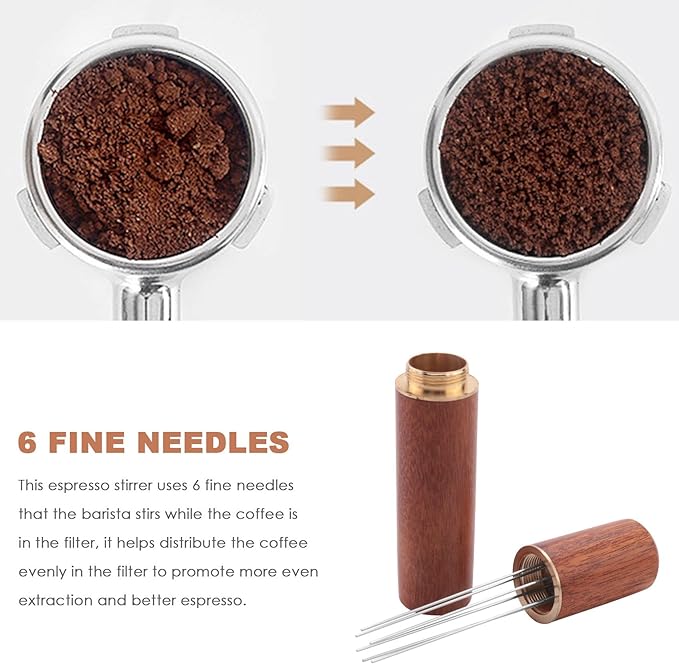 - This espresso stirrer uses 6 fine needles that the barista stirs while the coffee is in the filter, it helps distribute the coffee evenly in the filter to promote more even extraction and better espresso.
