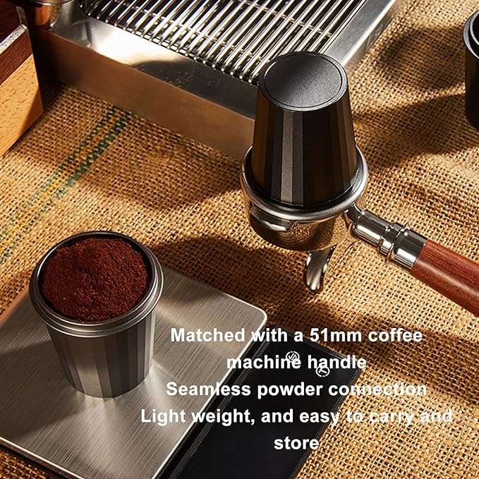 - Aluminum Alloy: The coffee dosing cup is made of premium aluminum alloy material, which is durable, not easy to fade.