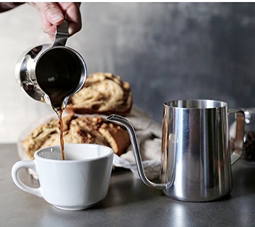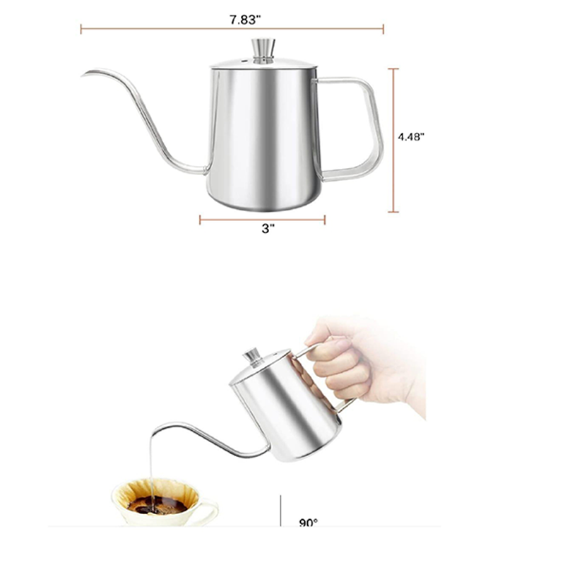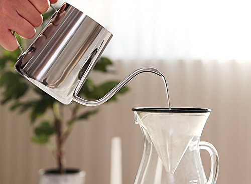 It has a thin and narrow spout with a gradual S shape and a diagonal line cut, which make the control of the pouring easy and help brewing the intrinsic taste of coffee when hand dripping