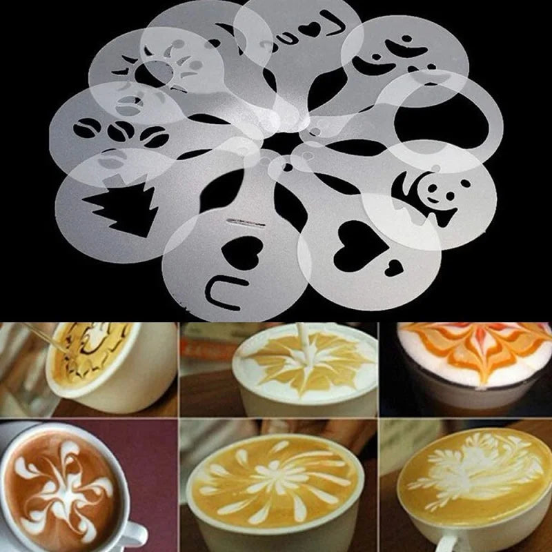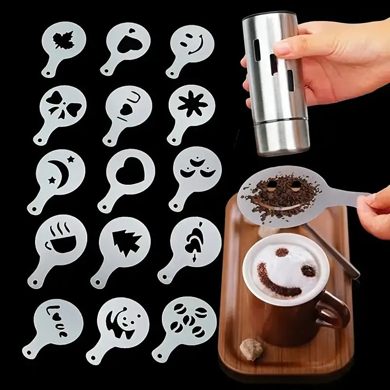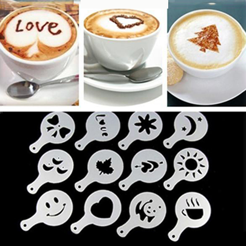 16pcs Coffee Latte Molds Cappuccino Coffee Art Stencils Template Strew Flowers Pad