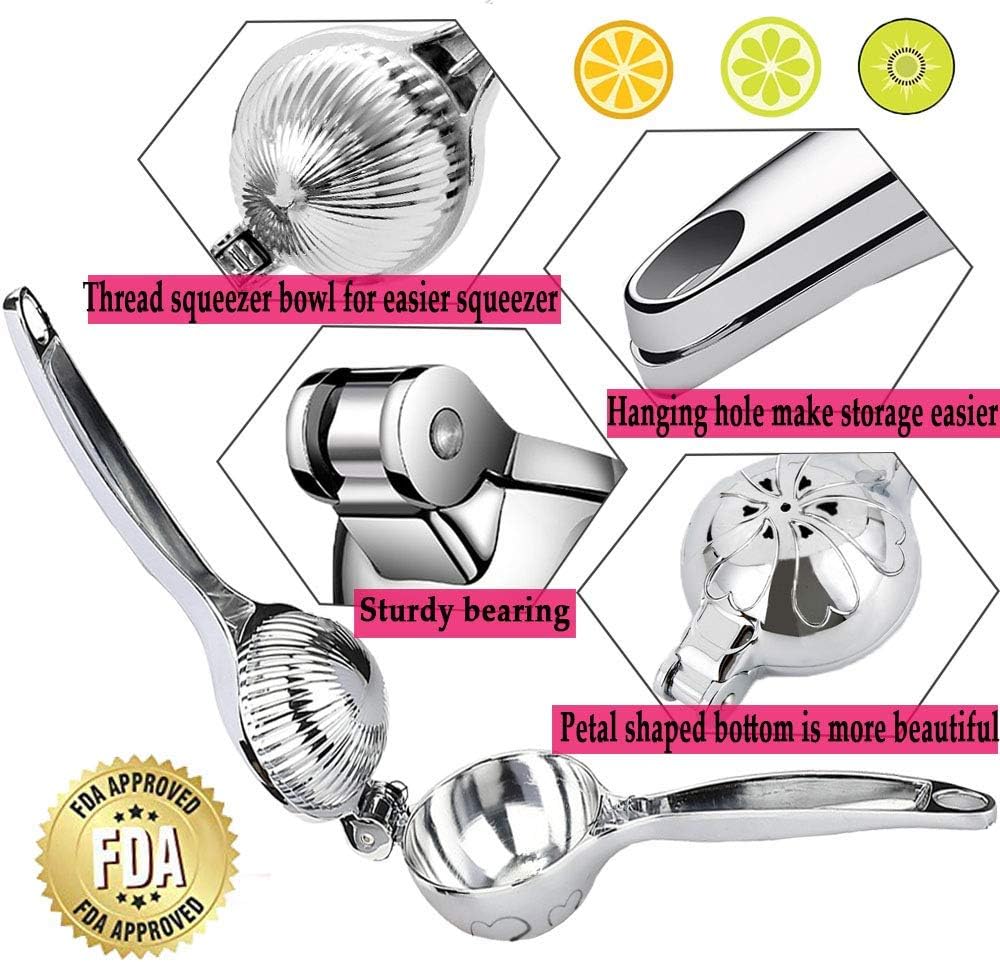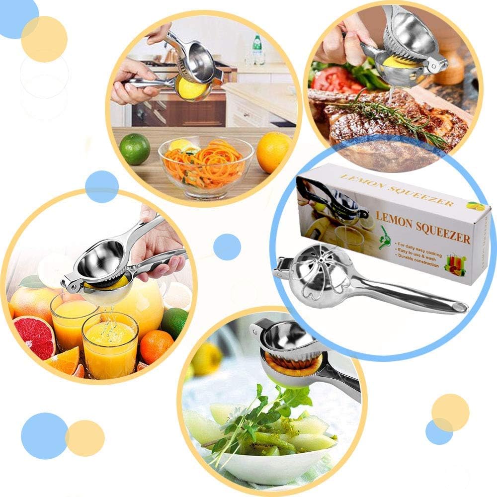 - 【LARGE CAPACITY】- The 2.75-inch bowl is larger than most other manual lemon squeezers. No longer need to cut the lemon or citrus into small pieces, squeezes a cup of juice in one time, This lemon juicer creates juice with NO SEEDS or pulp residue in your juice, No more waste. Manually squeezes lemons, limes, and other kinds citrus fruits to make your favorite juices at home