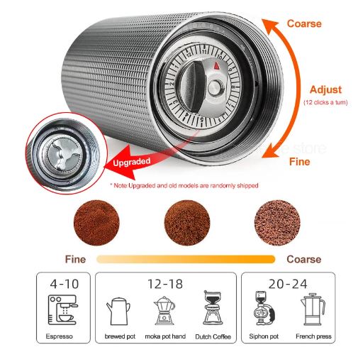Manual Coffee Grinder Capacity 25g with CNC Stainless Steel Conical Burr - Internal Adjustable Setting, Double Bearing Positioning, French Press Coffee for Hand Grinder Gift