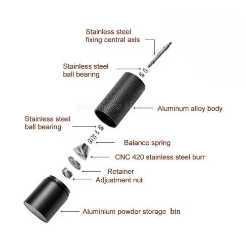 Manual V60 Coffee Grinder Capacity 25g with CNC Stainless Steel Conical Burr - Adjustable Internal Setting, Double Bearing Position
