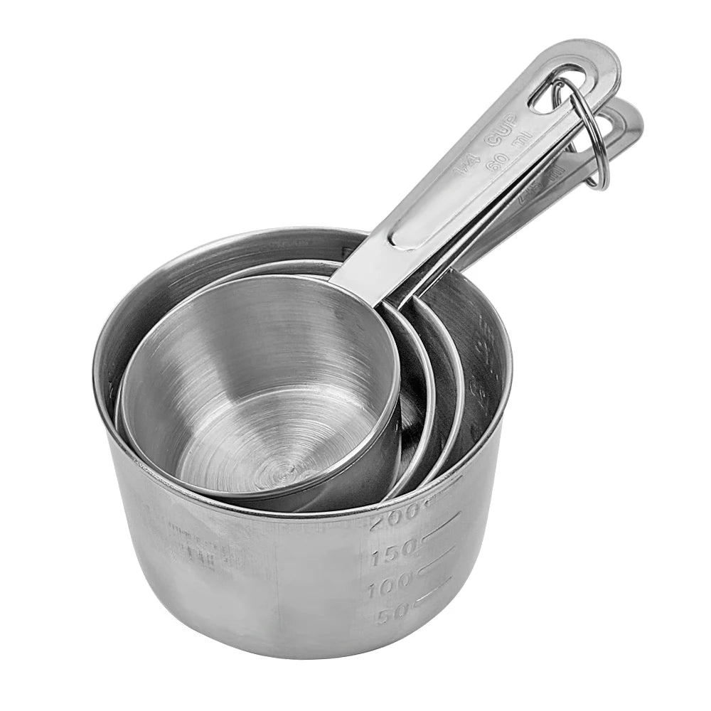 Measuring Cup Stainless Steel With Scale Kitchen Accessories Baking Tools For Flour Food Coffee Cooking 4pcs/set