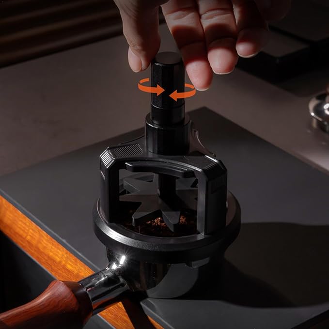 - ENSURE EVEN DISTRIBUTION - Our espresso distribution tool ensures perfect extraction results by evenly distributing coffee powder. Rotating rotisserie design avoids channeling effect for optimal flavor.