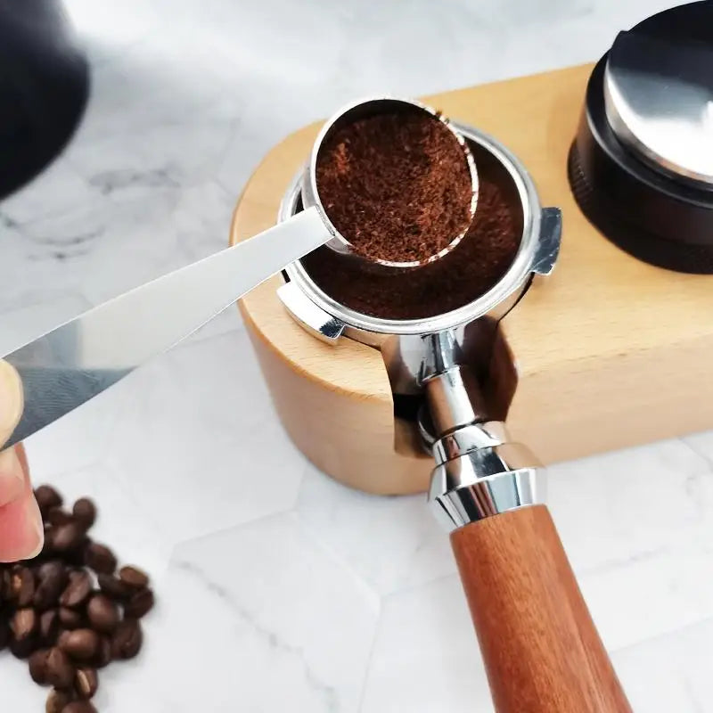A scoop and a tamper all in one - combination of espresso stamp and coffee measuring spoon, Nice to have two tools in one so it takes up less counter space