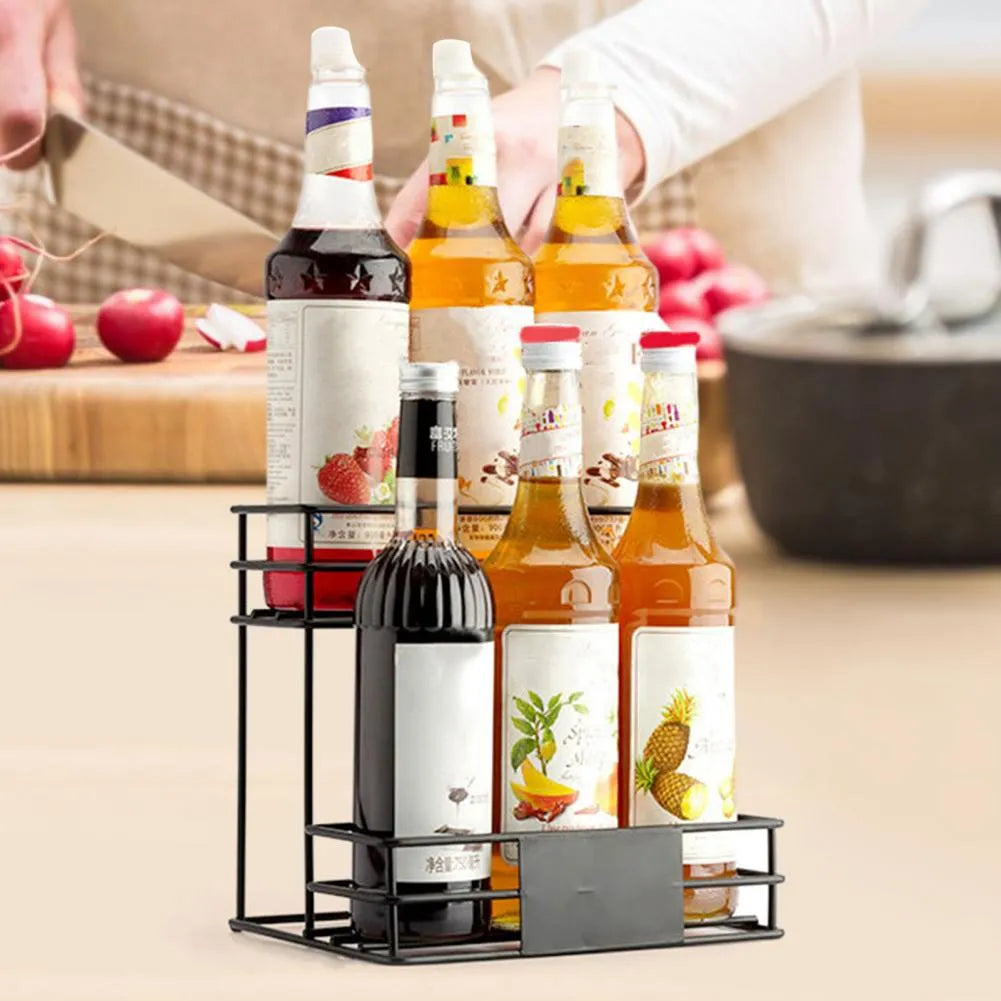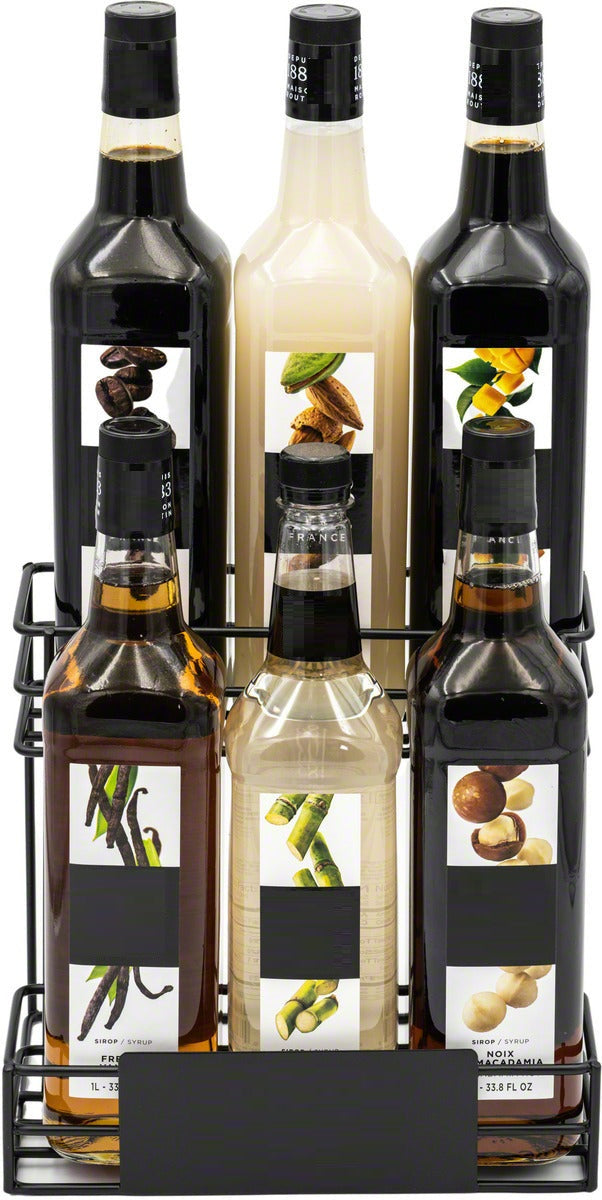 This sturdy wire rack is a great way to organize your syrup collection. It will hold, and elegantly display six 1 liter bottles of any brand