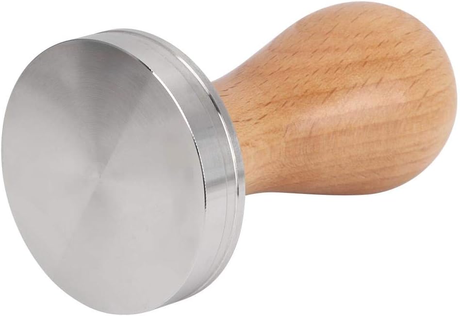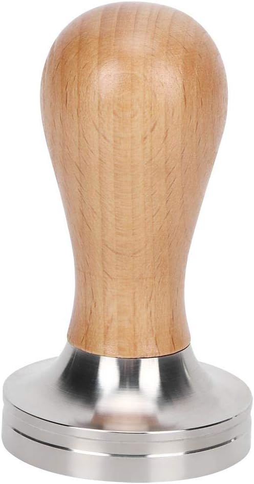 - ✿ FLAT STAINLESS STEEL BASE -- Our wood coffee tamper features a flat base, distributes force evenly and makes, will grind coffee granules better. For a smooth and intense espresso or coffee taste.