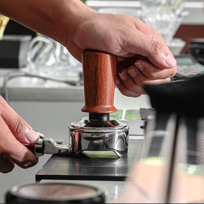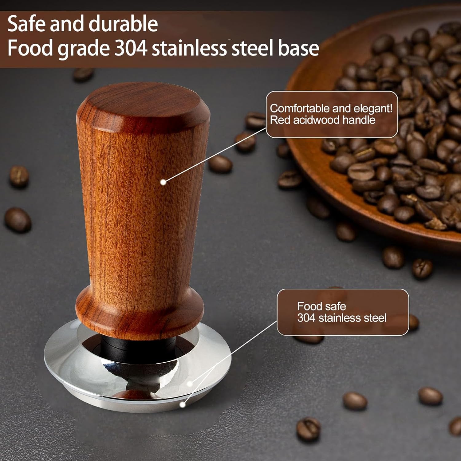 - 【Food Grade Stainless Steel】Your health is our priority no. The tamper handle is made of red sorrel wood and aluminium alloy, and we use the highest quality, food-safe 100% stainless steel for the base of our tampers without coating. Do not buy other cheaper tampers as they can peel off metal pieces into your floors when mashing